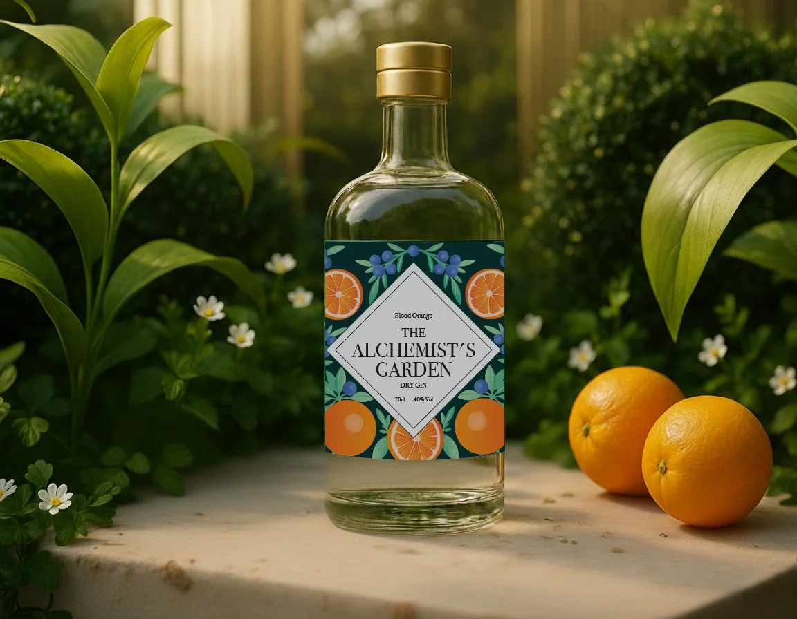 The Task: To develop a distinctive label design for a premium gin brand, with a focus on visually celebrating the key botanicals, blood orange and juniper, as the hero ingredients.